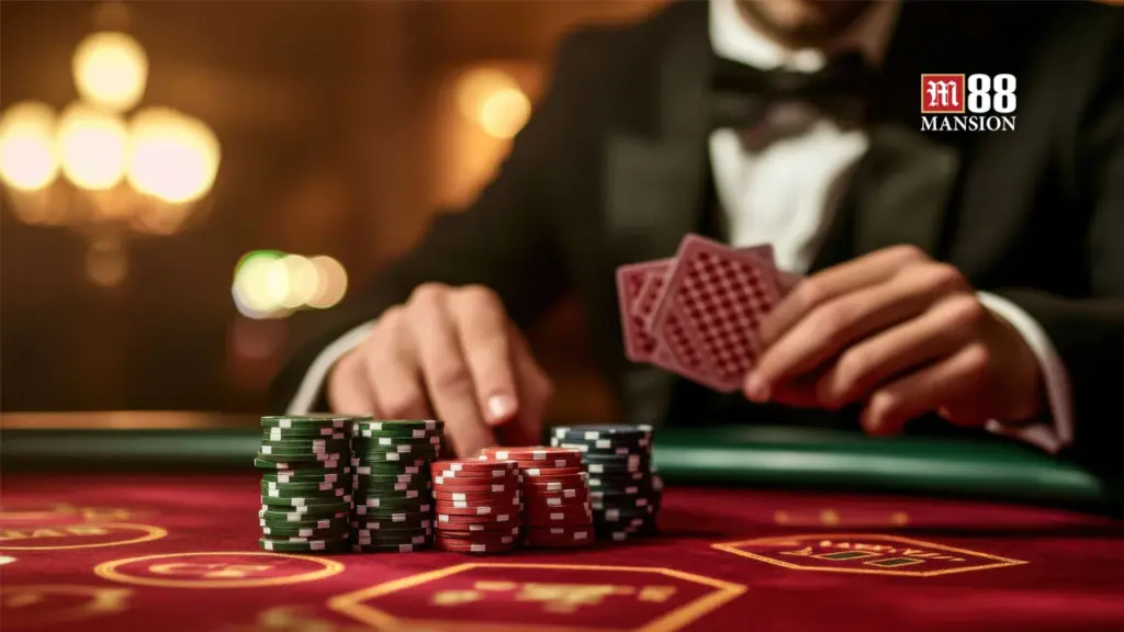 - Casino trực tuyến: Sảnh casino của M88 mang đến trải nghiệm chân thực với các trò chơi như baccarat, roulette, blackjack và sicbo, được phát trực tiếp bởi các dealer chuyên nghiệp. Công nghệ livestream HD đảm bảo hình ảnh sắc nét và không gian sòng bài sống động.